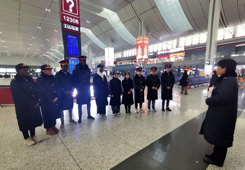 1月18日,春运第五天,兰州西站候车大厅内人潮涌动,返乡旅客满载行囊和对家乡的眷恋,脚步匆匆。人群中,一群身穿铁路制服的外国留学生,向行人热情地打着招呼,格外引人注目。